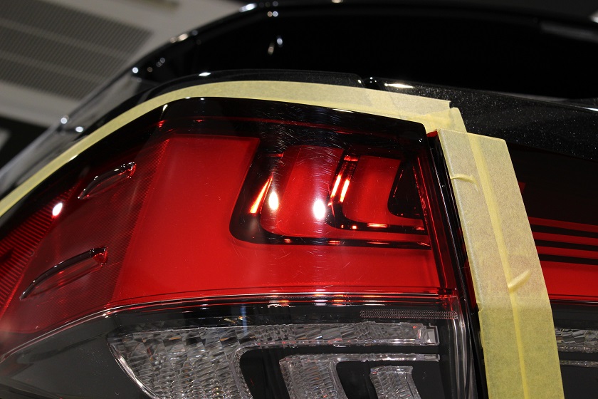続いてテールライトも研磨してまいります。イメージだと磨けないイメージだと思われますが磨くことができますので、キレイにしてまいります。